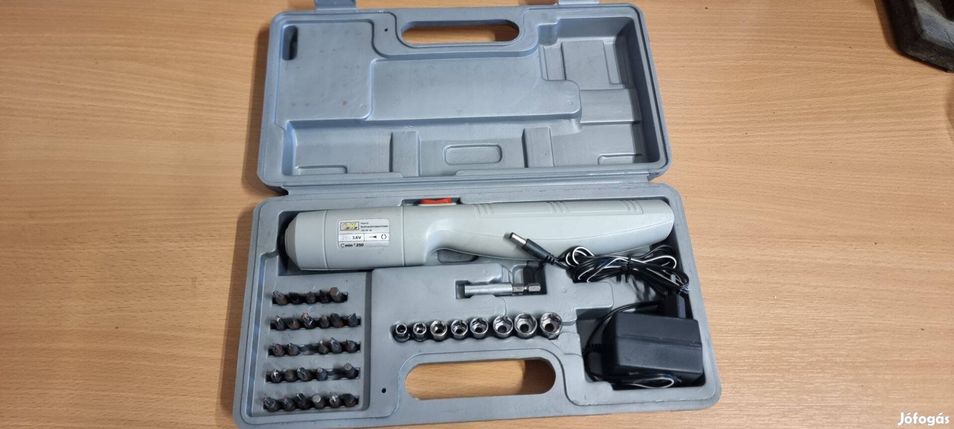 Akkus kézi csavarhúzó készlet csavarozó bitfejekkel szettben dobozában