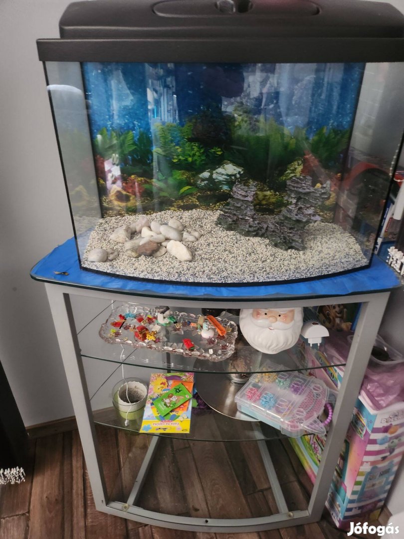 Eladó egy 55 literes akvárium, világitós tetővel, álvánnyal, szűrővel, tartozákokkal együtt.