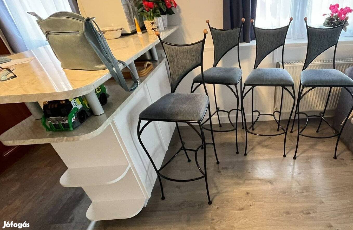 Albertirsán eladó a képeken látható 4 darab szürke kárpitozású kovácsoltvas bárszék, lehetőleg egyben.