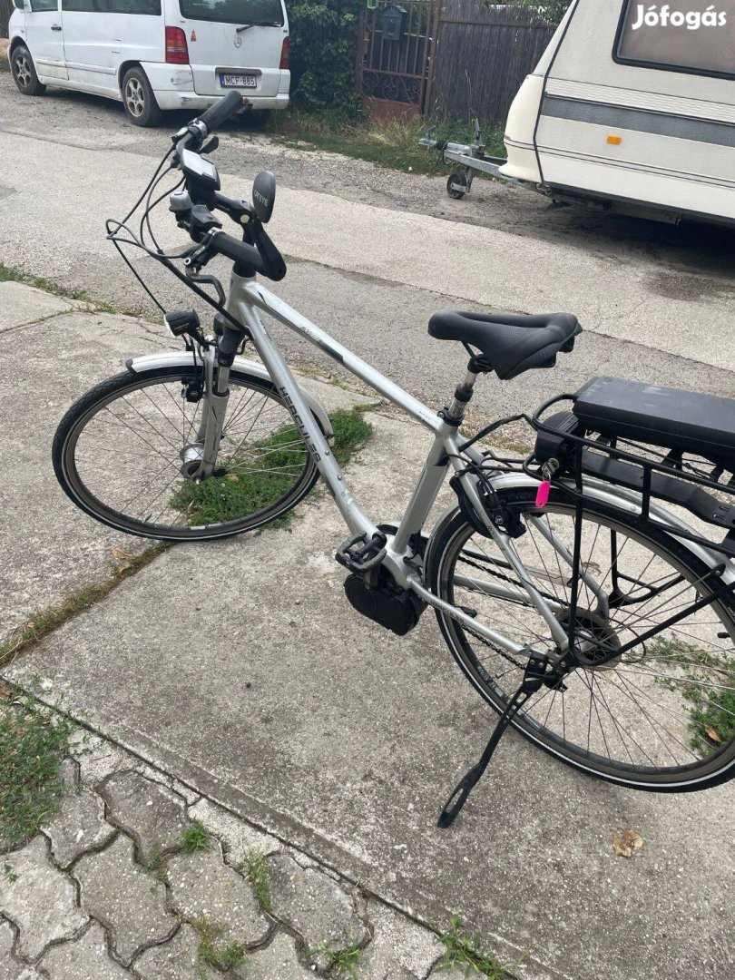 Eladó beázott motorral, hibás akumlátorral a képen látható elektromos kerékpár.Beázás miatt ezek az elektromos alkatrészek véglegesen megsérültek. Egyébként a kerékpár szép állapotú sok hasznos alkatrésszel. Bosch Classic 36V-os középmotorral, csomagtartóra épített Powerpack Bosch akkumulátorral - töltővel. Vázméret 55. Bosch HMI/Classic LCD kijelző, akutöltöttség,sebesség, megtett út kijelzéssel. Teleszkópos első villa. Magura hidraulikus felnifék elöl hátul, 9 fokozatú Shimano váltó . A világítás agydinamóról működik.