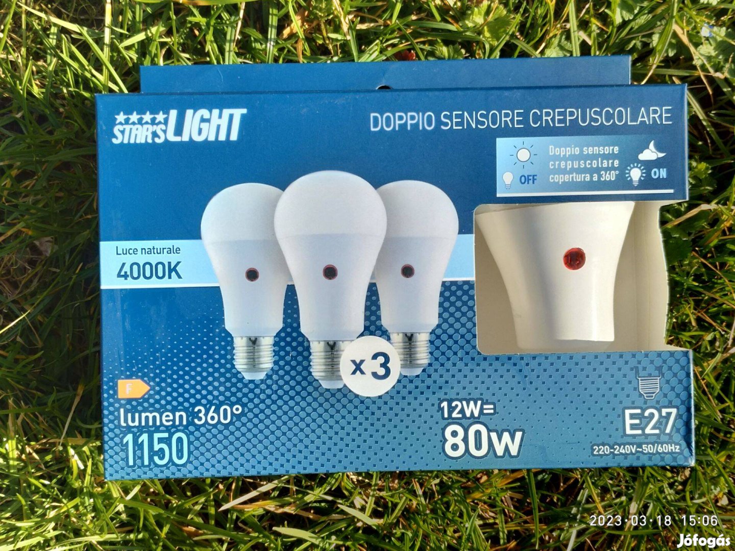 A piacon egyedülálló, kuriózum, ritkaság! Alkonykapcsolós LED izzó 12 Wattos eladó. E27-es foglalat (normál izzó foglalat), alkonykapcsoló beépítve a LED izzó foglalatába, amely az automatikus felkapcsolásért felelős szürkületkor és az automatikus lekapcsolásért felelős hajnalban. Időzített kapcsolás: csak akkor világít, ha sötét van. Ezáltal jelentős energia és pénz spórolható meg. A 12 Wattos LED izzó 80 Wattos normál izzó fényerejének felel meg: 1150 lumen (lm) fényerő. 15000 óra üzemidő, ami 15 év használatnak felel meg. 4000 K kellemes nappali fehér fény, nem az a neon fehér, ami bántja a szemet. Felkapcsoláskor azonnal (0, 1 másodperc) erős fényt ad, (nem kell bemelegedjen, mint a kompakt fénycsövek), a teljes fényerő azonnal rendelkezésre áll.