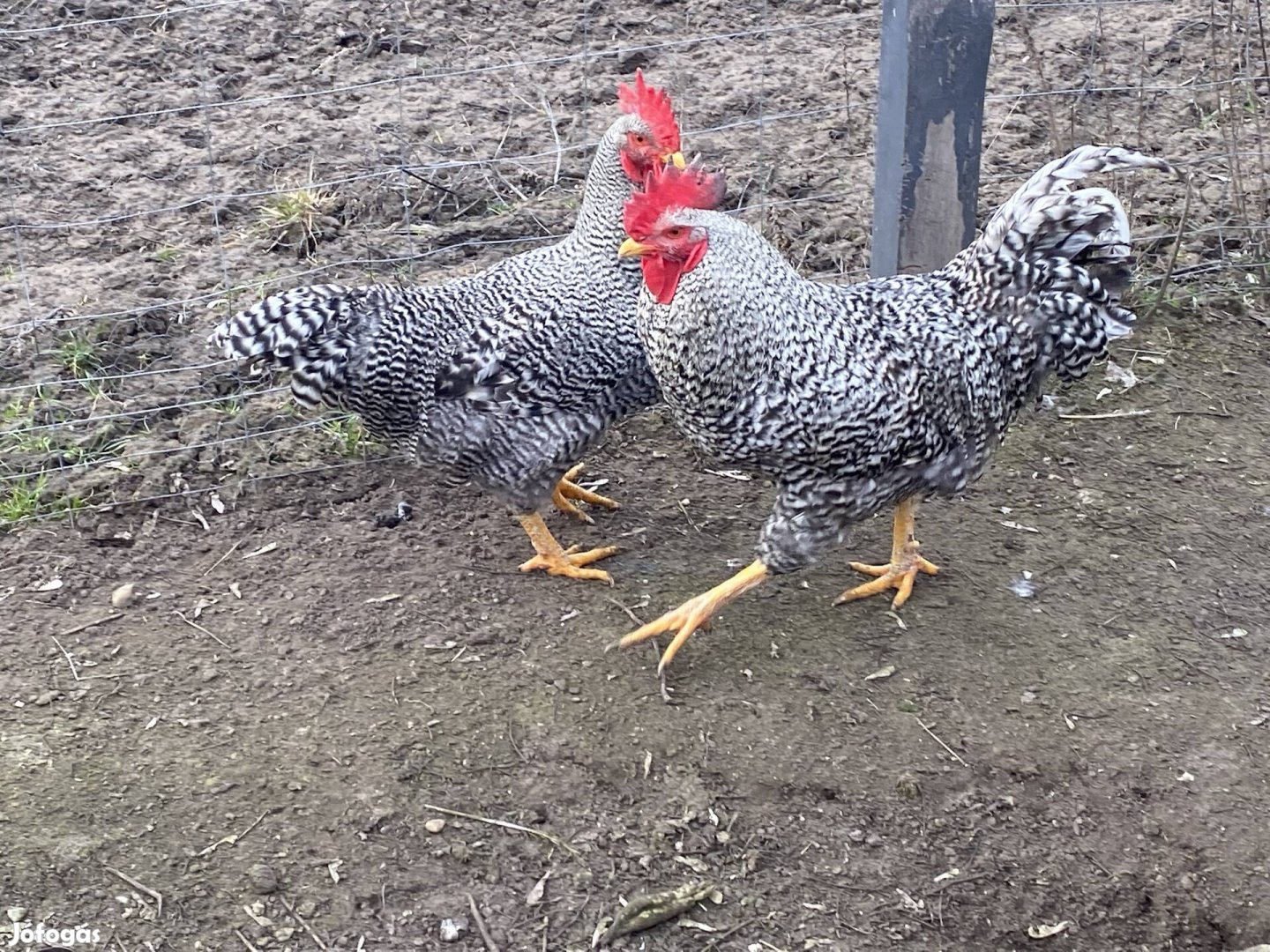 5 db Amrock kakas más udvarban kapirgálna saját keltetésűek szép nagyok . Nem támadnak . 2025 nyár vége fele keltek csak Szemes takarmány és konyhai maradékon nevelkedtek plusz kerti kapirgálás