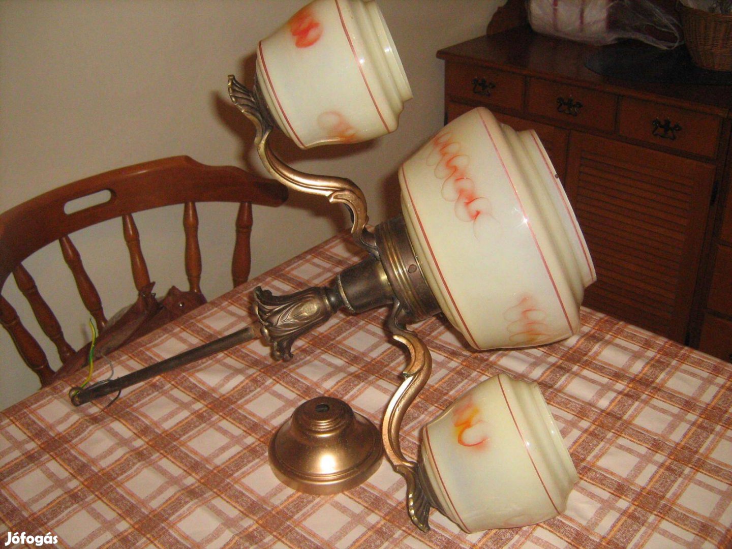 Antik art deco stílusú csillár lámpa hibátlan állapotba. 3 plusz középső búrás.