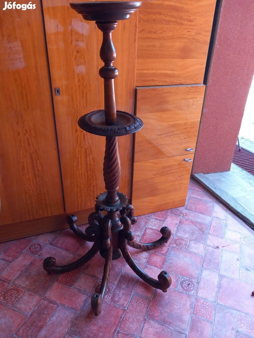 Antik dúsan faragott hatalmas posztmens 160cm. Nagypolgári lakás óriási csillárja volt. át lett alakítva lerakónak, posztmensnek, adok hozzá felűlre üveg lapot.