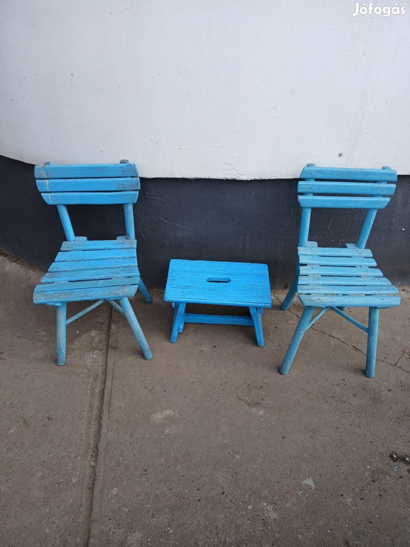 Eladó régi 2db fa kis szék és 1 db kis sámli.