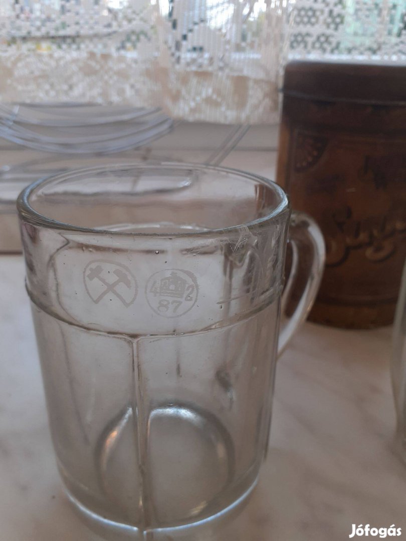 Antik jelzett üveg sörös korsó Orosházi üveggyár