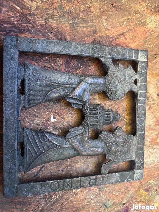 Eladó egy különleges, masszív öntött fém falidísz/plakett. A tárgy az örmény keresztény művészet egyik legfontosabb jelképét, a Zvartnoc-i katedrálist és annak építőit/védelmezőit ábrázolja. Körben örmény és latin betűs ("Zvartnots") felirattal díszített.