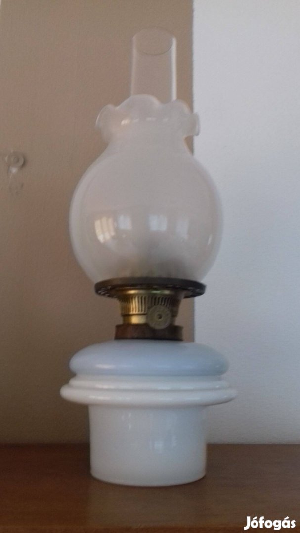 Antik petróleum lámpa dupla burával restaurálva. Tejüveg aljzat,