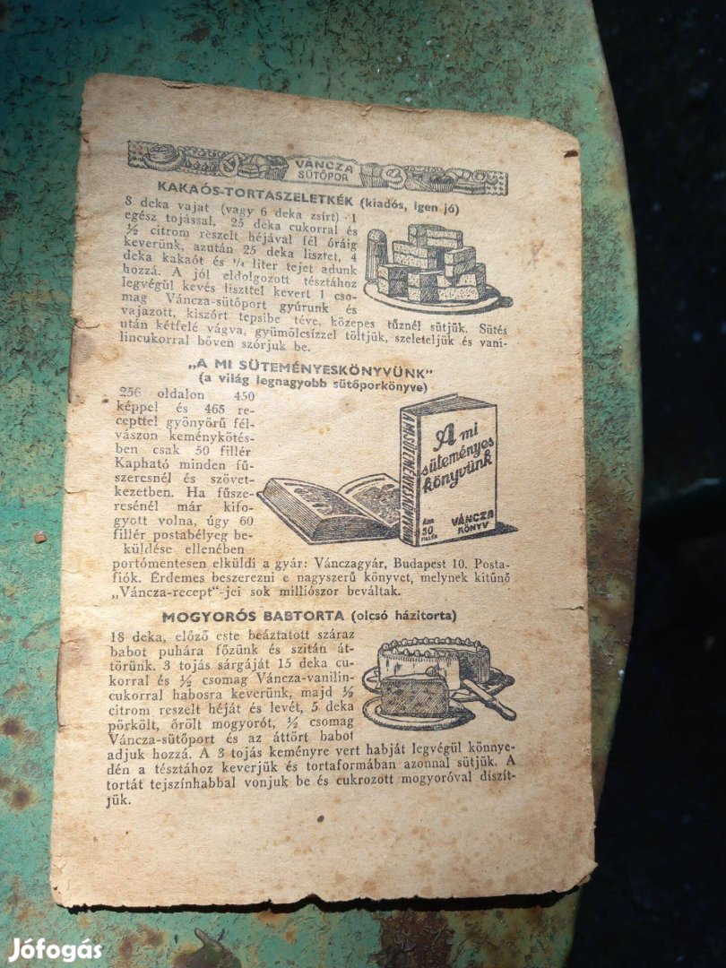 Antik több mint 100 éves süteményes receptfüzet