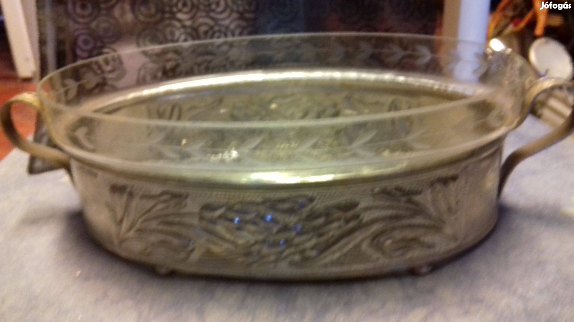 Antik üvegbetétes asztalközép 23x14cm hibátlan