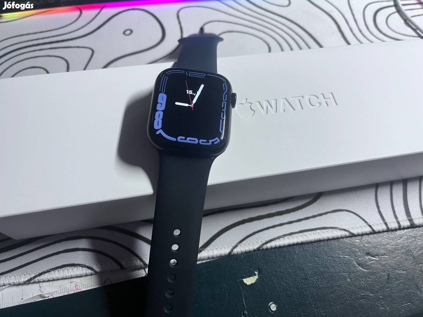 Eladó sorba került szeretett 8-as szériájú apple watchom újabb szériára váltás miatt. Az órához jár a képeken látható szíj, egy nagy, és egy kisebb szíjjal, illetve egy töltőkábel is. Akksija 82%-os, de igazából egy napot vígan elmegy. Én minden este töltöttem. A kijelzőn látható egy picit nyomatékosabb karc, de ez is elég sekély, ujjal vagy körömmel nem érezhető.