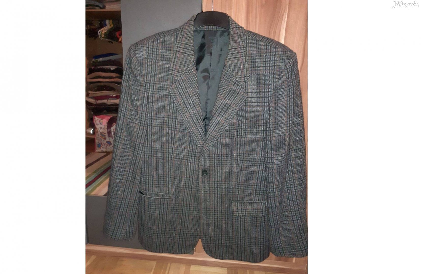 3db belső zseb, 2db zseb elöl, gombos, galléros, váll párnázott.