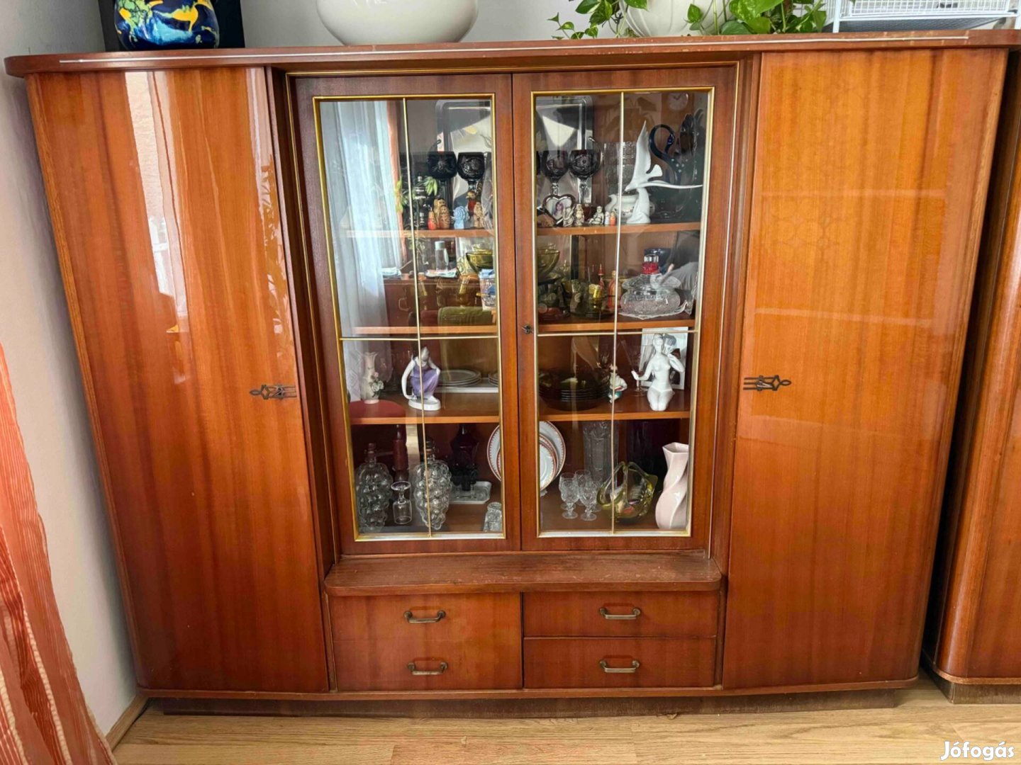 Eladó a képen látható gyönyörű, megkímélt állapotú, art deco stílusú, 2 részes vitrines szekrénysor. 1 polcos és 2 akasztós szekrénnyel rendelkezik. Kérés esetén további képeket is tudok küldeni. A szekrényben lévő tárgyak nem képzik az eladás részét. Szállításban nem tudok segíteni.