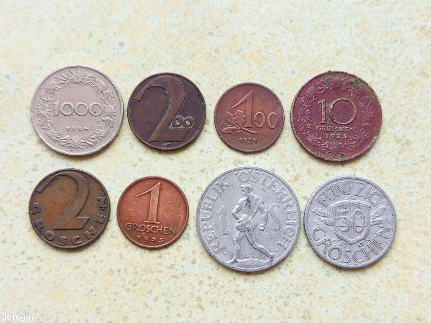 Ausztria 8 db különböző Érme Groschen Schilling Korona 1924-1947