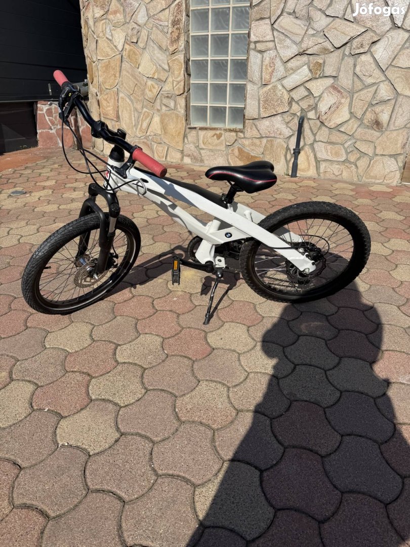 BMW Cruise Bike Junior típusú gyermek kerékpár látható, amely a BMW Lifestyle kollekciójának része. Ezt a modellt kifejezetten 6 és 9 év közötti gyerekek számára tervezték.