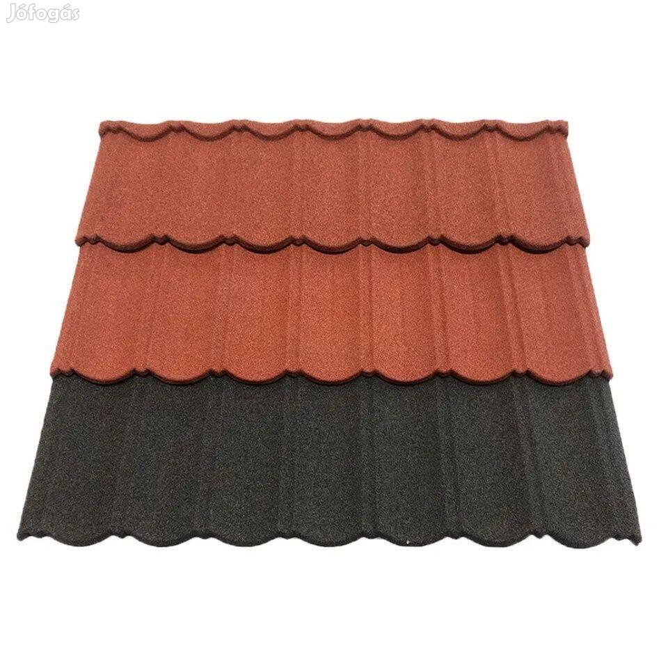 Hódfarkú, kőszórt modulos cserepeslemez tetőfedésre.