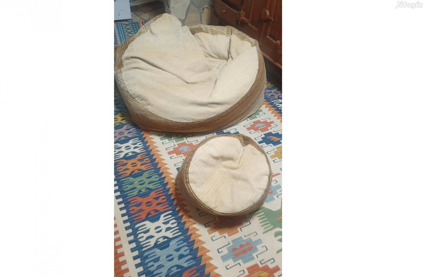 1 méter talpméretű nagy babzsák szett eladó ! Mosható , cipzáras strapabíró szövetből van . 2 db szett van és a hozzá tartózó 2 db puff . Az ár 1 szettre vonatkozik