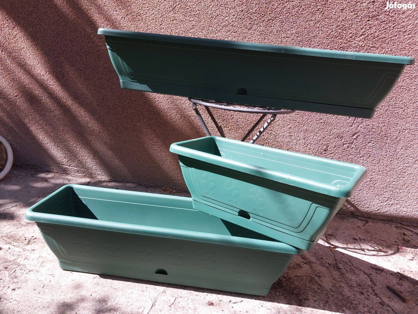 Műanyag ládák, merev falú, kemény anyagból. Az aljára pattintható a tálca. Újak, sosem voltak használva.