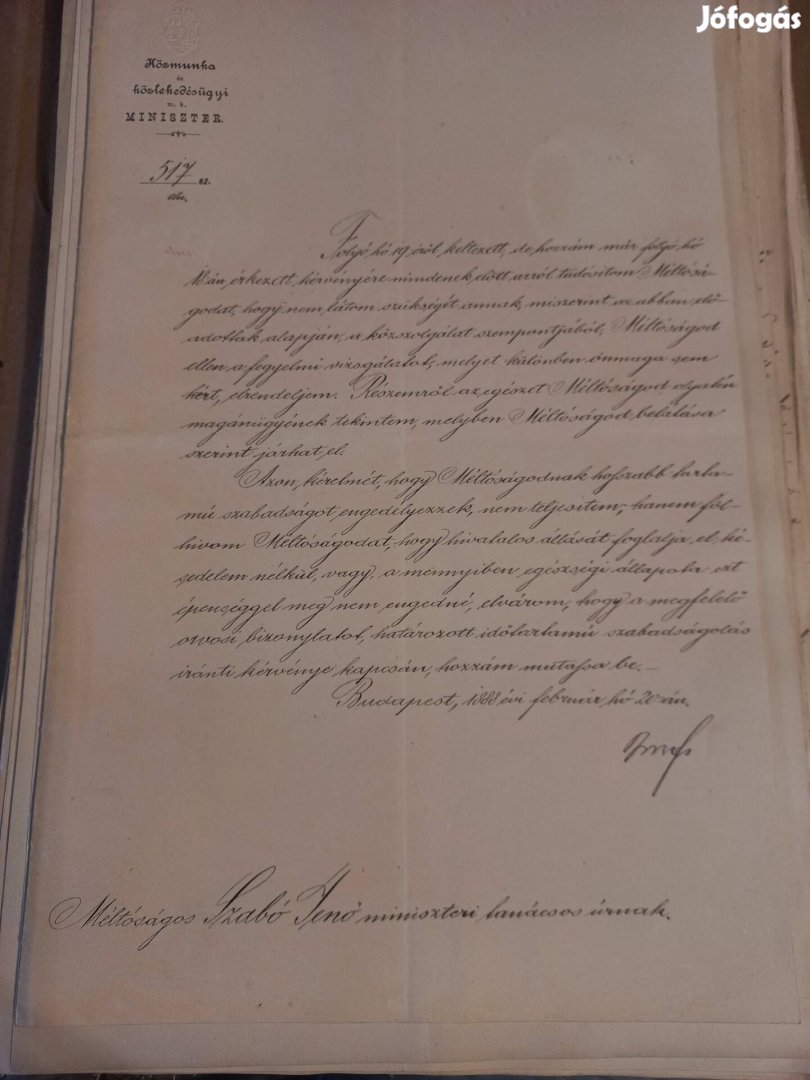Eladó Baross Gábor levél Szabó Jenőnek.Ajánlatokat kérnék.