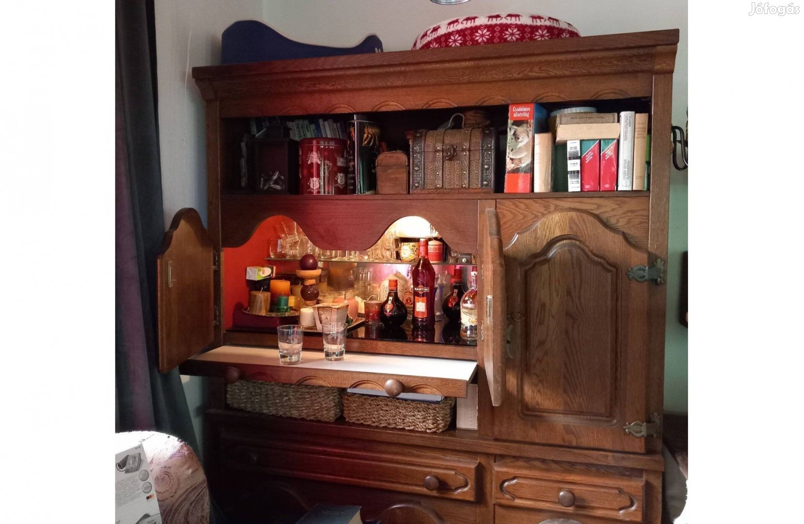 Bárszekrényes tölgyfa bútor 190 x 143 cm