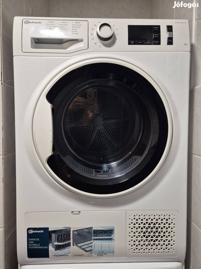 Bauknecht (Whirlpool prémium típusa) 8 kilos hőszivattyús száritógép. Ma 84 x sz 60 x me 60 cm. Jól működö állapotban, apró esztétikai hibákkal. Német nyelvű panel, használati utasítás a neten megtalálható. Személyesen Törökbálinton átvehető.