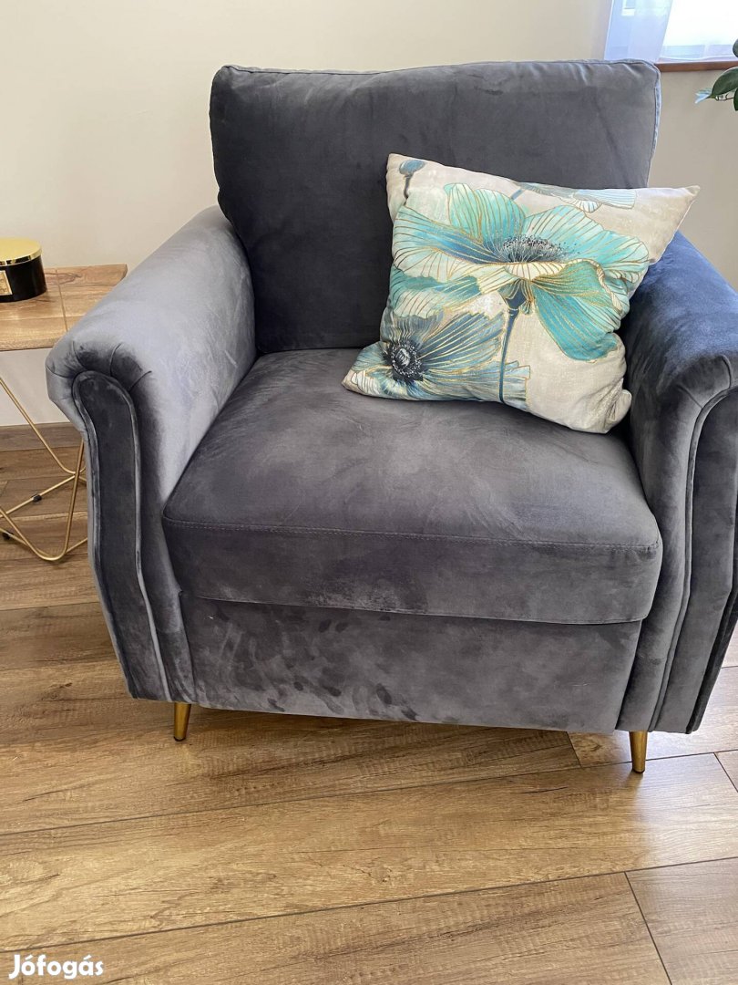 Nagyon szép, elegáns, kényelmes, különleges fotel puha, bársonyos kárpittal.
