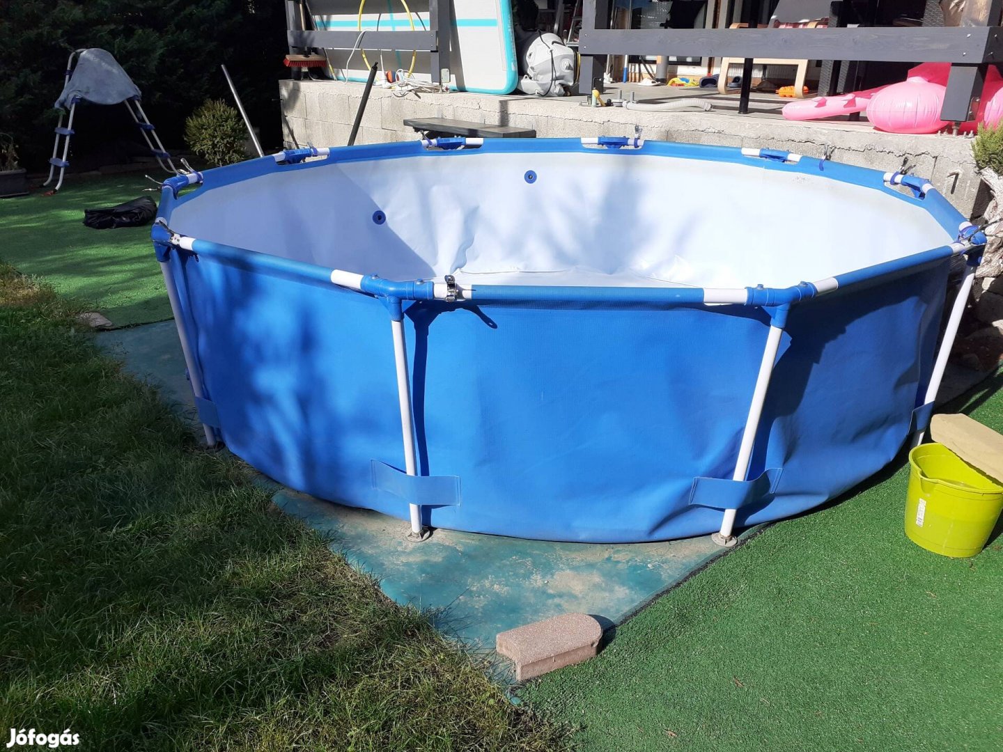 Eladó a képen látható medence, 3m-es átmérőjű, 76cm magas. Takatófólia és egy új papírszűrős vízforgató van hozzá. A medencén két kis javítás van. Nem ereszt.