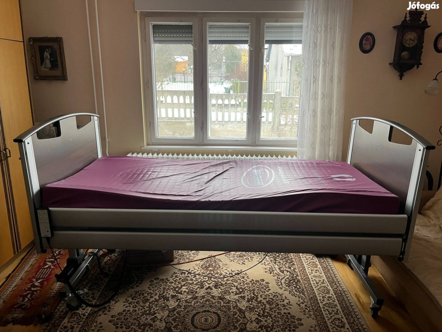 Gumis matraccal együtt eladó a képeken látható új állapotú minőségi, aluminium váz szerkezetű betegápoló motoros ágy. Az ágy 4 kereke mind külön fékkel rendelkezik. Mindkét odalon manuálisan felemelhető aluminium leesés gátlóval rendlekezik.