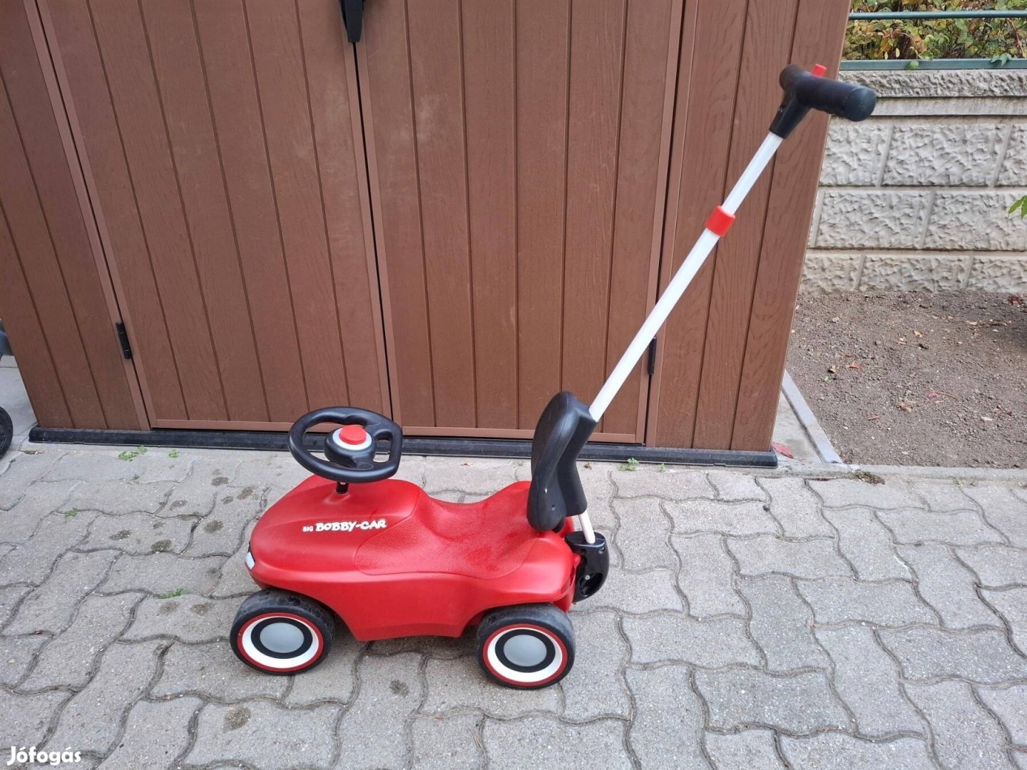 Eladó Big Bobby Car Neo szett, 3-rétegű gumikerekekkel, tolókarral és ergonomikus háttámlával.