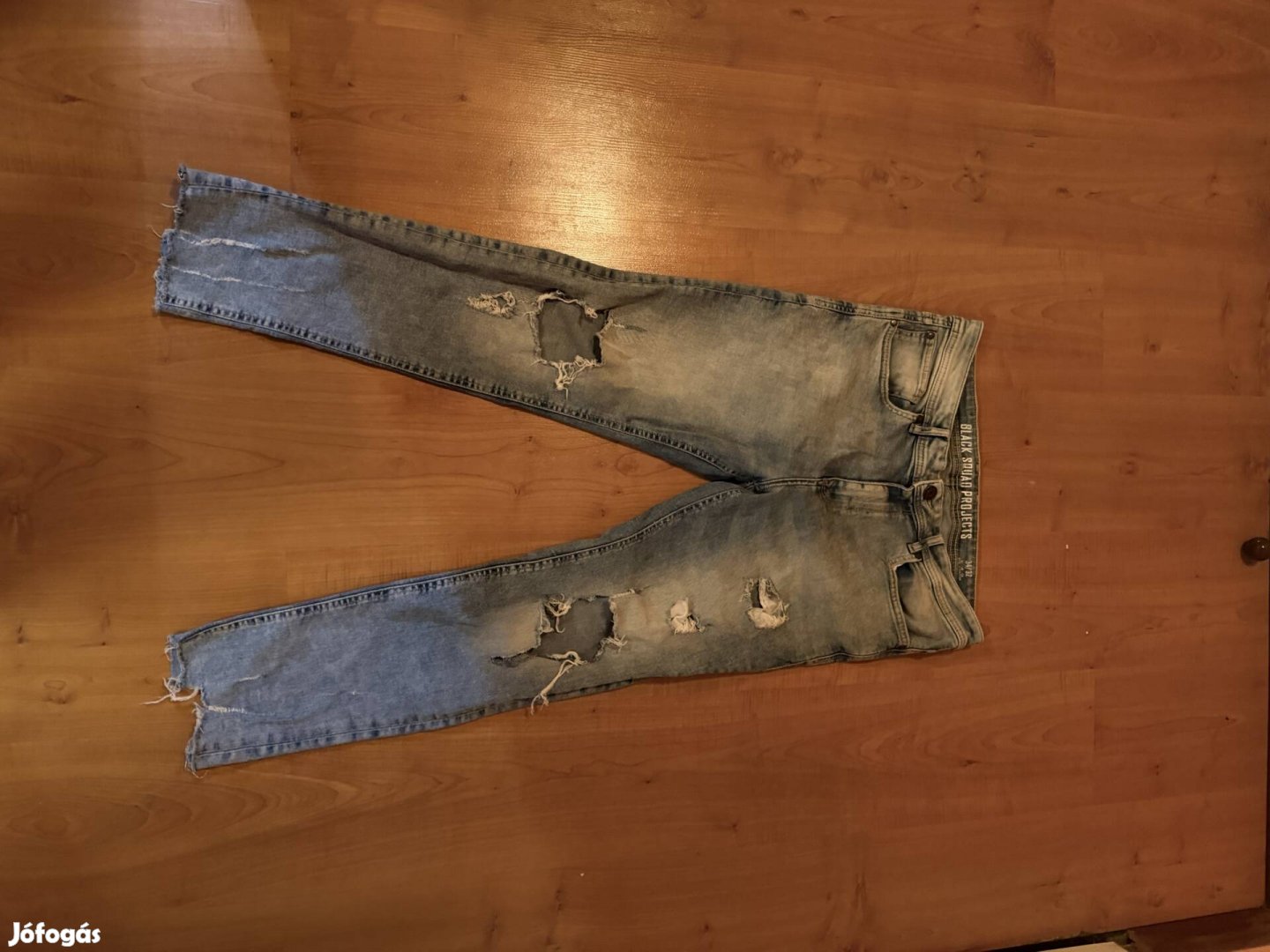 Gyárilag szaggatott (distressed), nem használatból adódó szakadás.