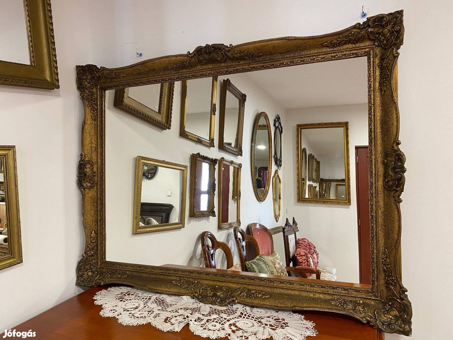 Szép állapotú blondelkeretes tükör méretei: 117 x 88 cm.