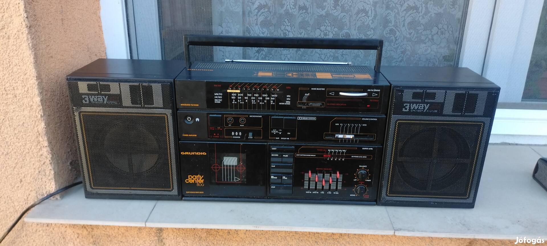 Egy szép,megkímélt állapotú Grundig party center 800 típusú bombox,a kazettás magnó nem működik, fogaskerék hiba miatt,a többi része hibátlan