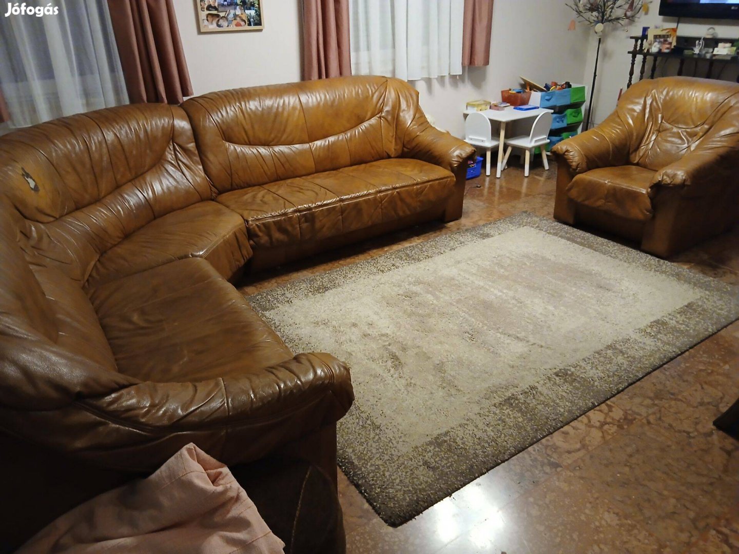 Bőr ülőgarnitúra 1 db fotellel eladó. kihúzható ágyfelülettel, kisebb hibával.