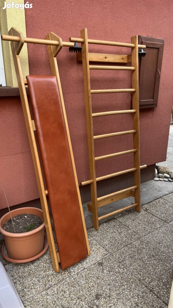 Eladó ez a szuper praktikus bordasfal a gyogytorna rendelőmbe volt. De mostani helyen nem kell. Van hozza egy ra akaszthato pad ami fuggeszkedokent is használható helyettesitheti a ma divatos drága logó padokat illetve gyerekek fejlesztésére is hasznos lehet