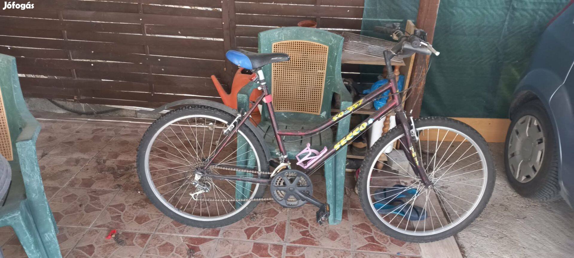 Eladó a képeken látható bordó színű MTB kerékpár.