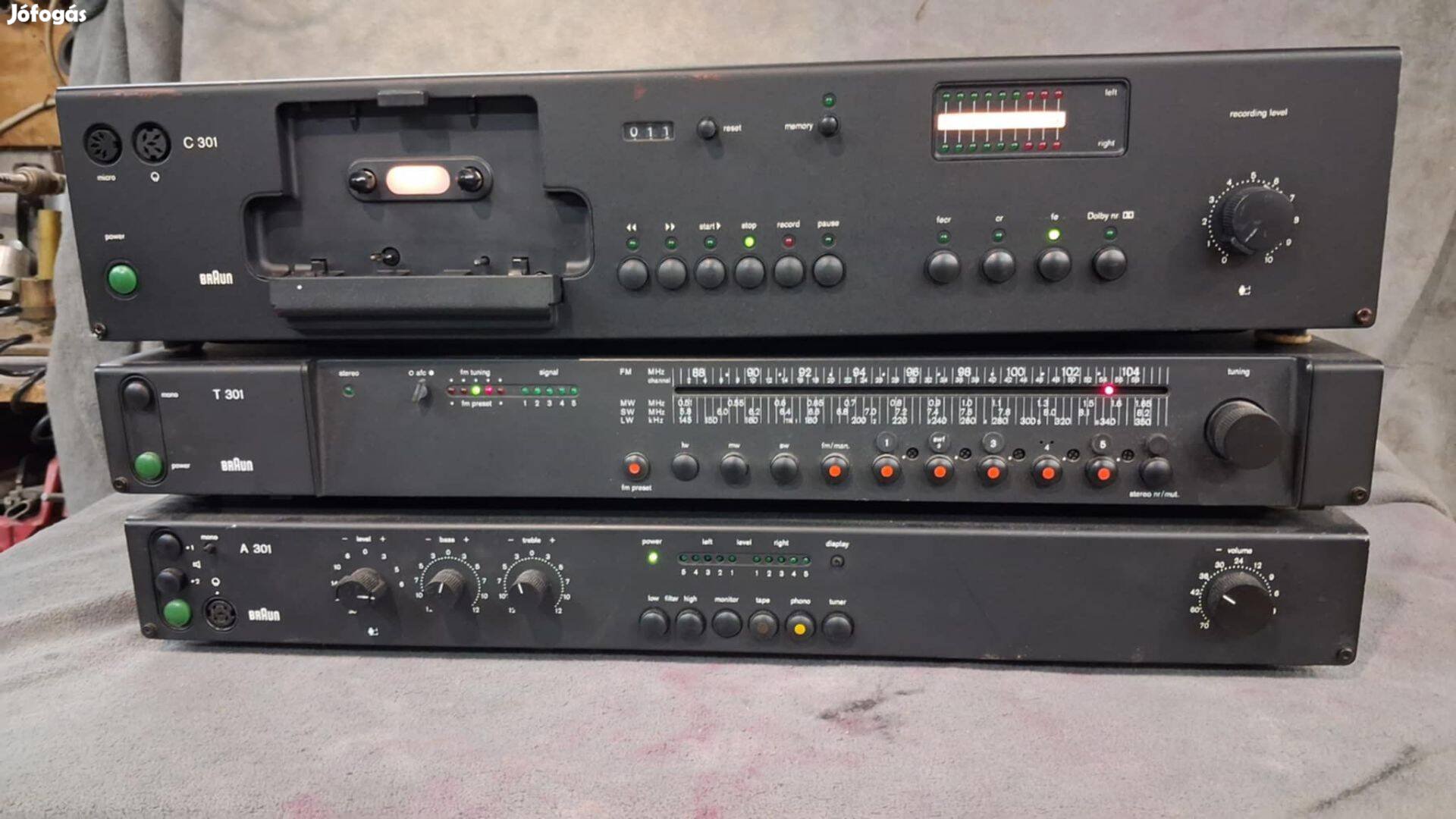 Eladó egy komplett Braun 301 torony,1978 ból.A tuner az adókat jól veszi meg is tartja,erősítő is hibátlan és zajmentes,a deck átesett most egy szíj és görgőcserén ezenfelül a fej is kopásmentes állapotú..Csak egyben eladó.Átvehető otthonomban Diósdon