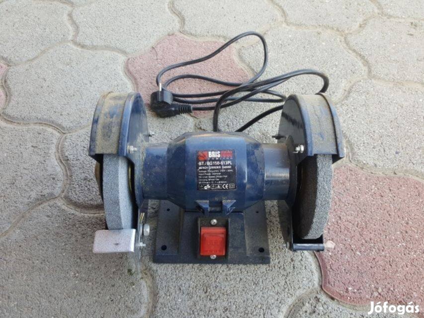 Bristool England 200 watt köszörű 150 mm, felszerelhető tartozékok (jobbos munkadarab tartó, lehajtható szikravédő plexi, csavarok) és leírás doboz van hozzá, talán kétszer használtam, poros - le kell törölgetni, komoly darab finoman fut a motor benne eladó. Lehetőség szerint személyes átvétel.