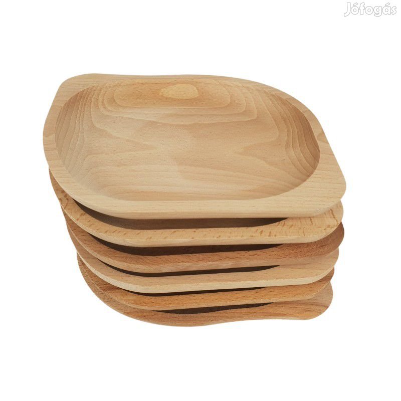 Rendezvényekre, éttermekbe, vagy csak otthonra, egy 6 részes bükkfából készült faragott tányér, méretei: kb 23,5 cm hosszú, 20 cm széles, átlósan a füleknél mérve 27,5 cm és 25 mm vastag.