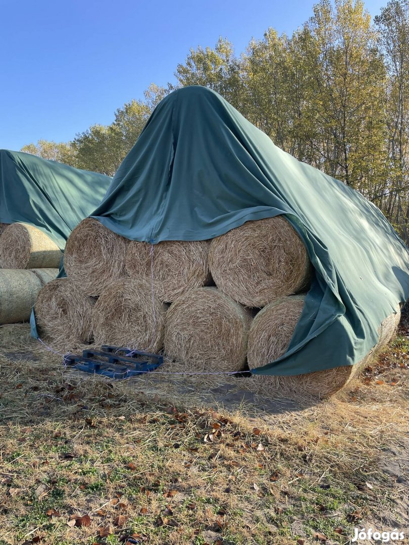 125*120-as hálós körbála. Nem ázott meg. Bálatakaró ponyva alatt tárolt. Rakodást meg tudom oldani. Szállításban tudok segíteni.
