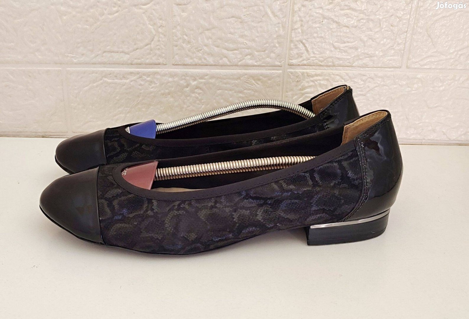 Egyetlen alkalommal viselt, nagyon szép, hibátlan állapotú, fekete színű Caprice vajpuha bőr női cipő lélegző, bőr talpbéléssel. A cipő szegélye gumis, így biztos tartást ad a lábnak, és ezért látható, hogy felgörbül az orr rész, mert elég erős a gumírozása. Az első képen fotóztam sámfával, hogy lehessen látni, felvéve milyen szépen kisimul.