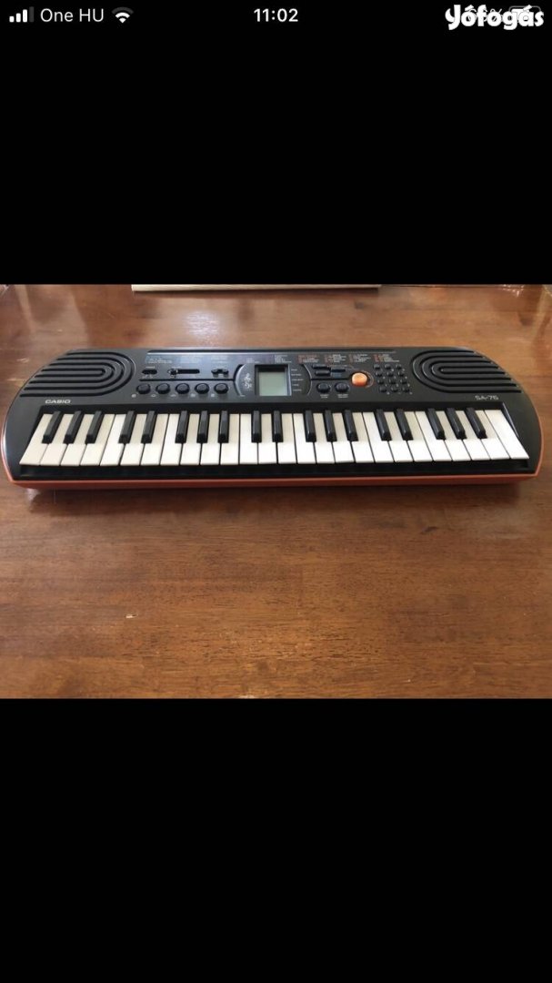 A Casio SA-76 egy kompakt, 44 billentyűs mini szintetizátor, amely ideális kezdőknek. 100 hangszín és 50 ritmus segítségével változatos zenei élményeket kínál. Különféle funkciókkal rendelkezik, mint a demo dalok, dupla hangbeállítás és LCD kijelző. Akkumulátorral működik, így könnyen hordozható, és a fekete-narancssárga színkombináció modern megjelenést biztosít. Ideális választás azoknak, akik szeretnének egyszerűen és kényelmesen zenélni.Csak Is Személyesen Vehető ÁT!