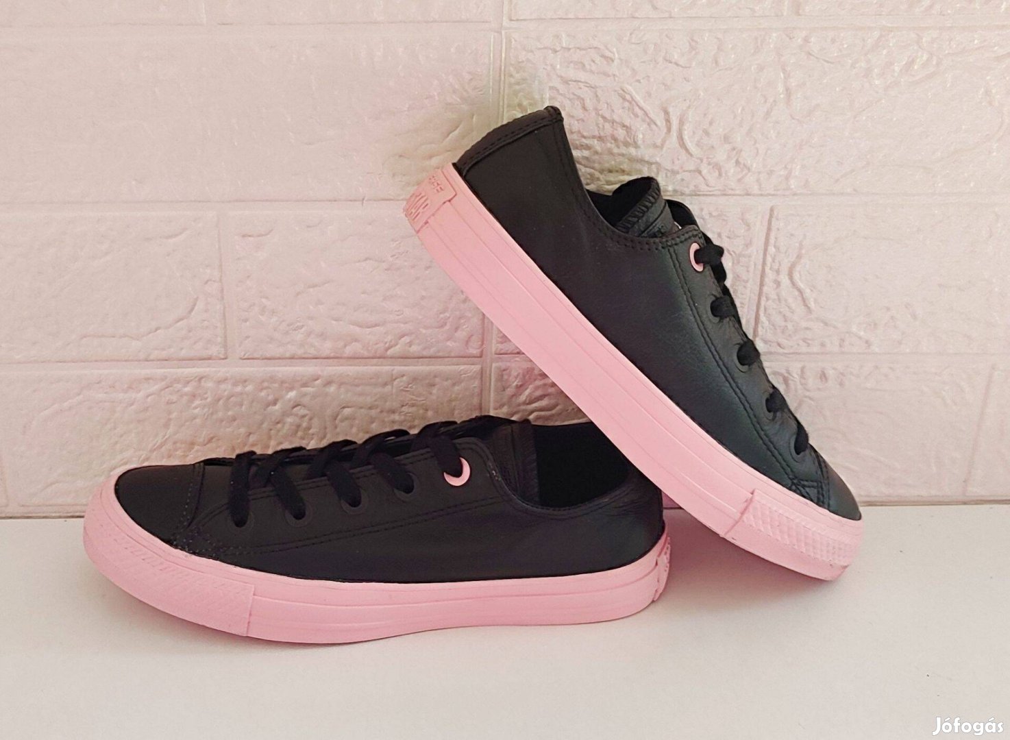 2-3 alkalommal viselt, hibátlan állapotú, fekete-pink színösszeállítású Converse Chuck Taylor All Star Lift Platform tornacipő puha bőr felsőrésszel, vastagon párnázott talpbéléssel, divatos, platformos talppal.