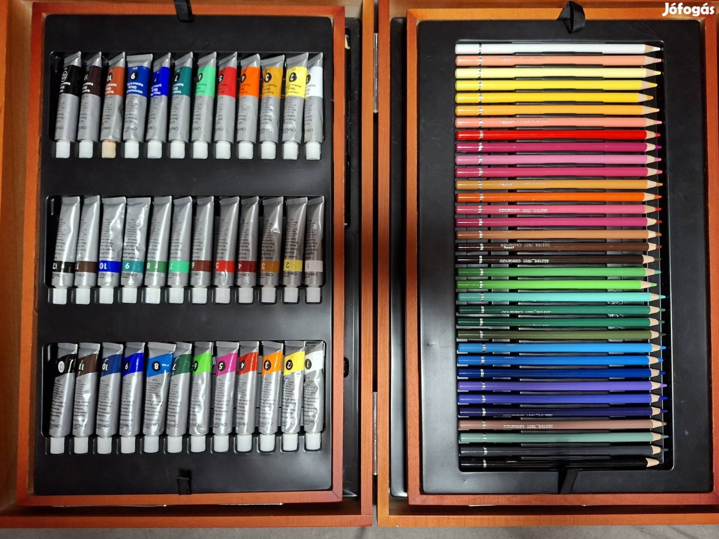 Crelando rajz és festék készlet egy kicsit hiányos de nem nagyon csak egy-két dolog hiányzik de a képen lathatóak a hiányzó dolgok de azon kívűl teljesen jól lehet használni