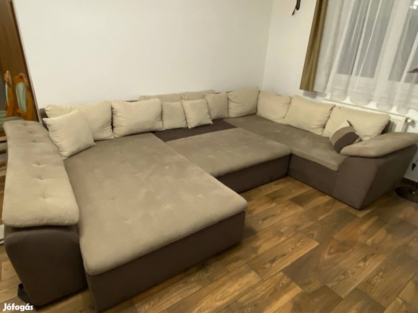 Igazi, családi együtt fetrengős, tv nézős kanapé. 5 fő kényelmesen elfekszik nyitott állapotban rajta. Nagyon masszív, nem nyikorog. Hibátlan, erős textília. 390.000 Ft.