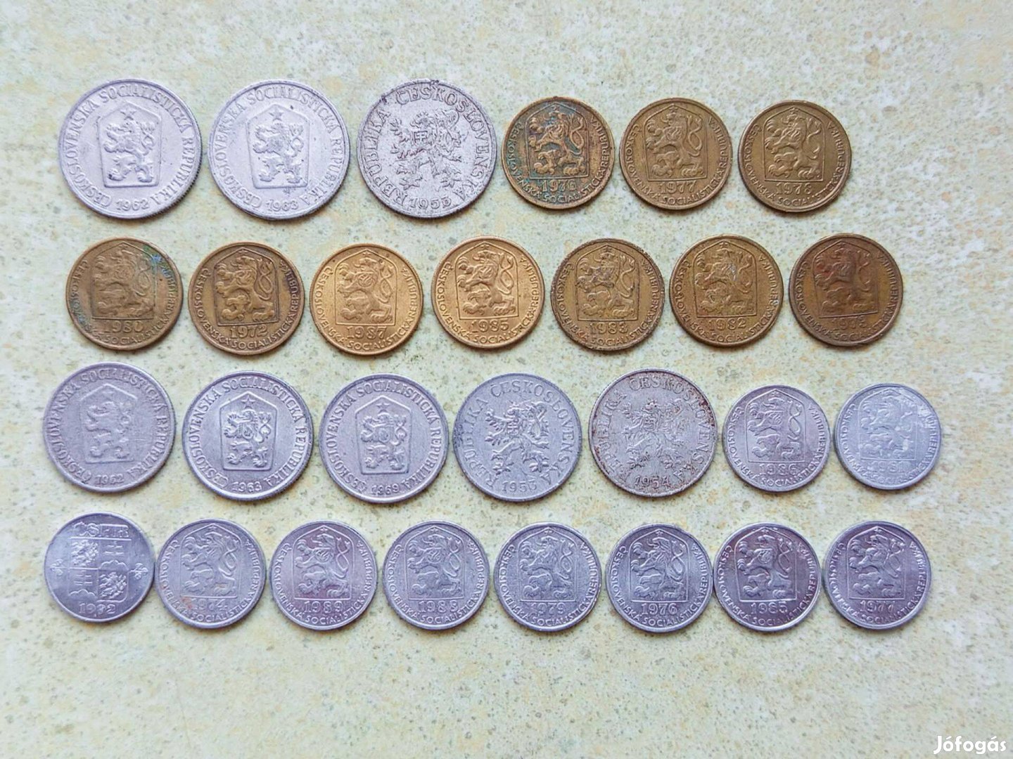 Csehszlovákia 28 db Különböző Érme 10 20 25 Halierov Heller 1953-1992