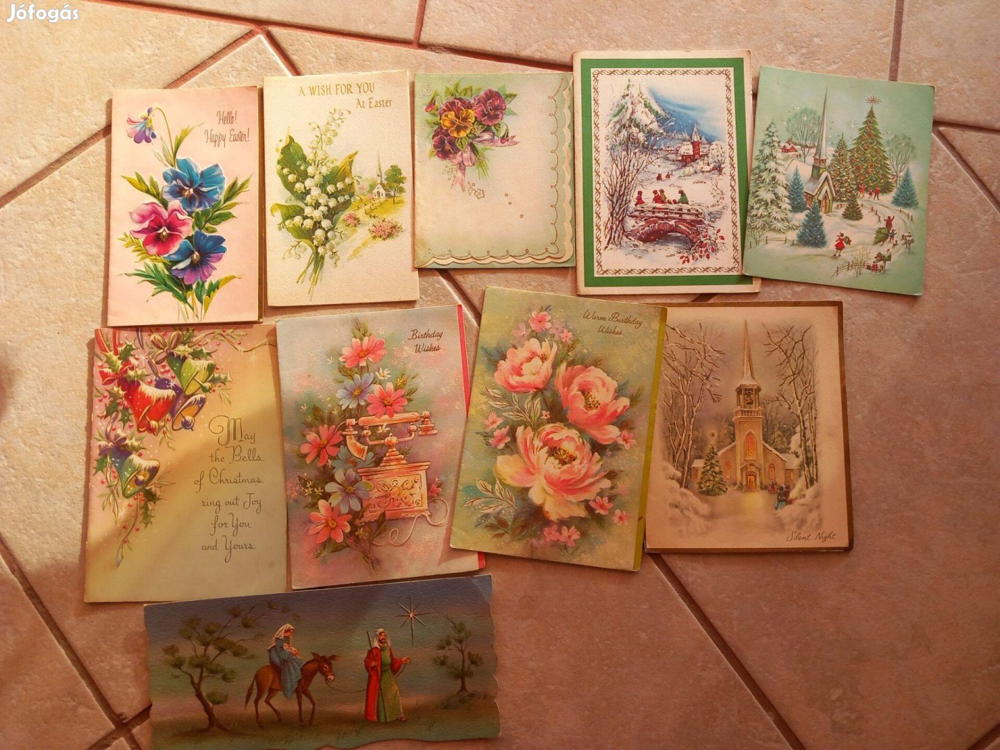Gyönyörű csillámos aranyozott kihajtható képeslap csomag 60-as évekből. Főleg Német és Amerikai lapok. Ár egy képen lévő csomag ára. Összesen 16 csomag van kb 190db.