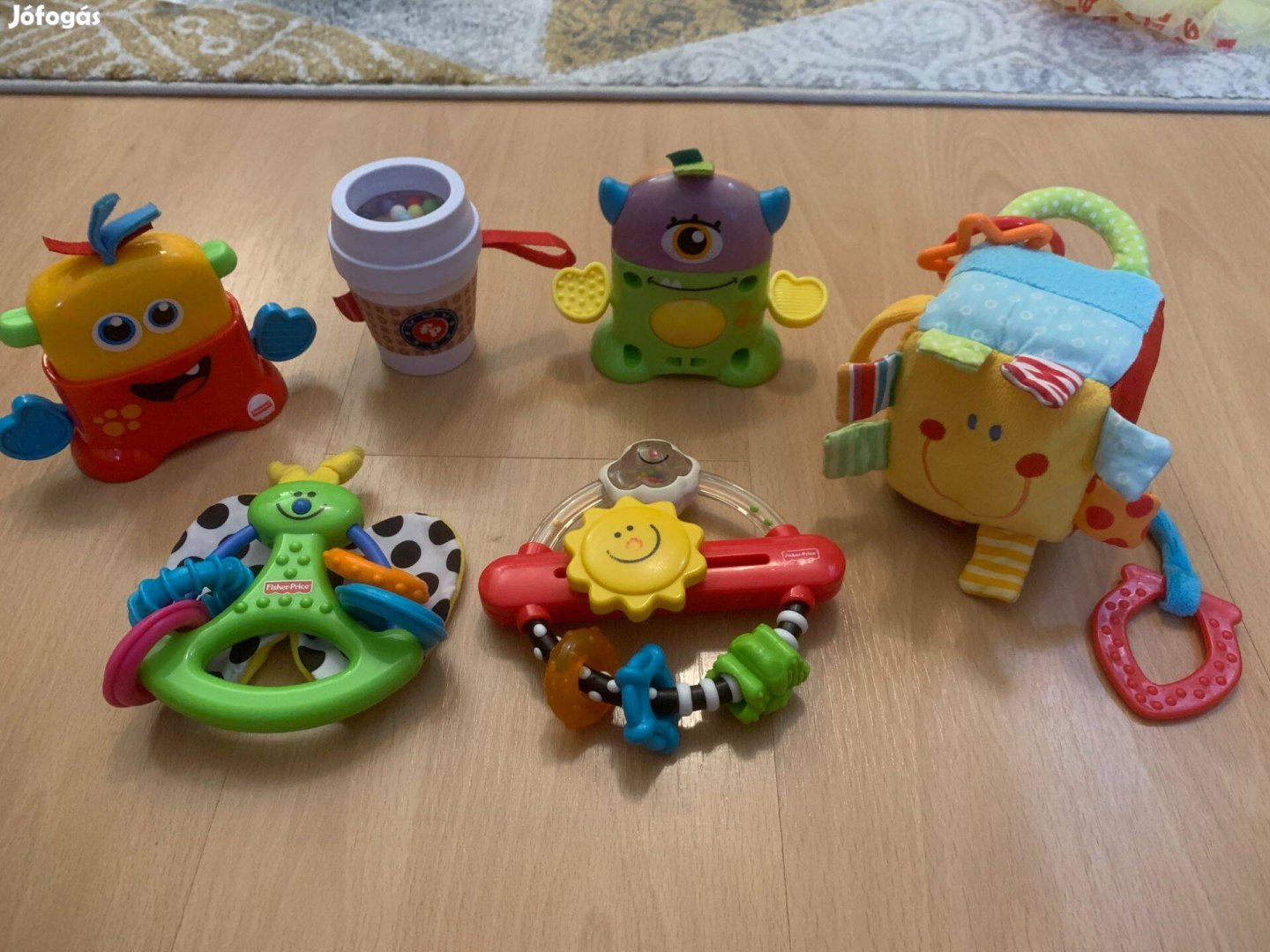 Eladó csörgő, zörgő pillangó, csipogó kocka, szörnyikék, pohár, napocska egyenként is