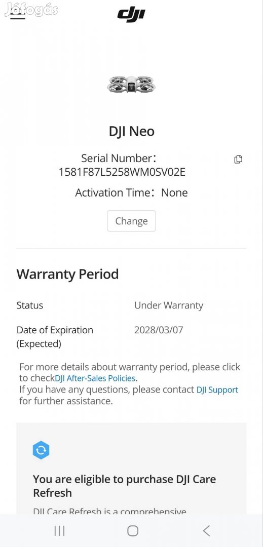 Eladó DJI Neo alap szett, új, 2 év garanciával. A drón és akkumlátor aktiválatlan.