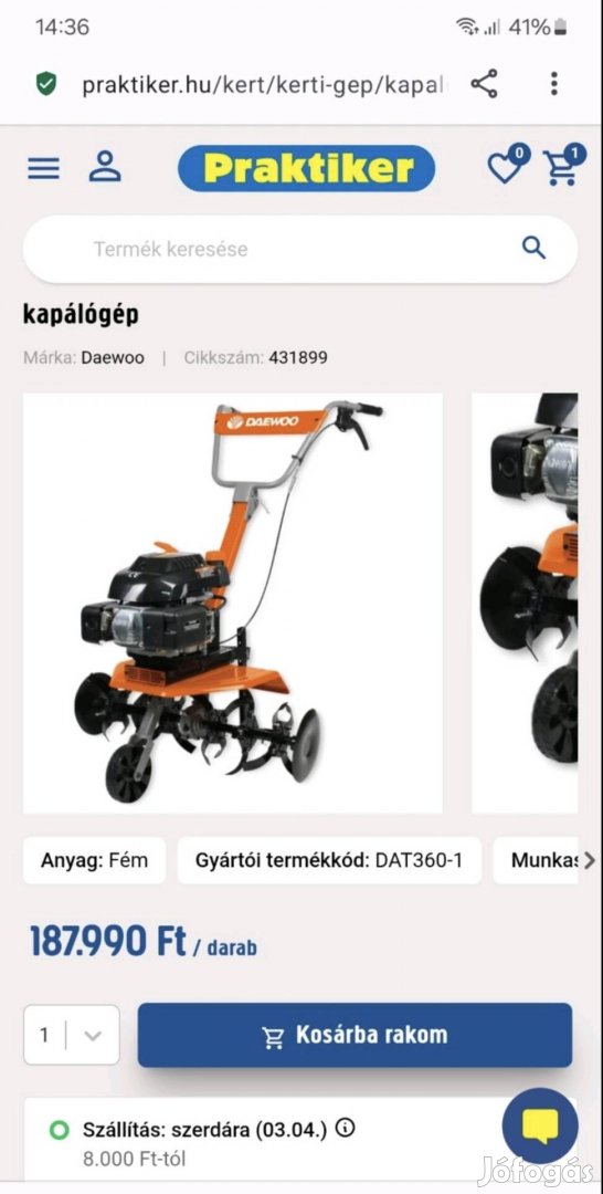 Eladó egy bontatlan csomagolásban, gyári pántolásos dobozban lévő kapálógép. Eredeti ára 189.990 Ft.