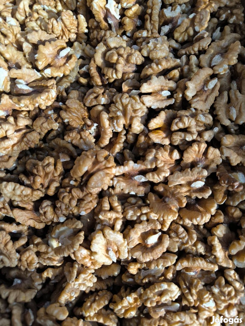 Frissen tört, nagyrészt feles finom dióbél eladó Minimum 10 kg-tól 3800 forint/kg áron. Gödön és környékén vehető át személyesen.